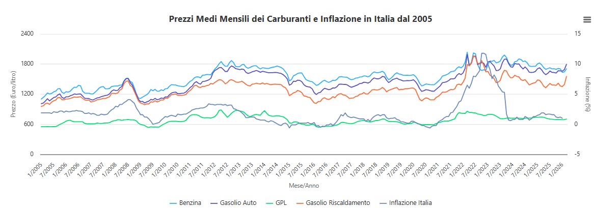 L’andamento dei prezzi alla pompa in Italia può essere analizzato anche attraverso la